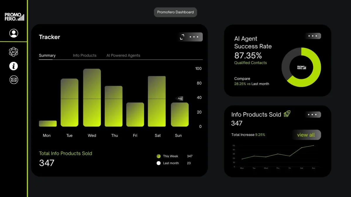 At Promofero, we specialize in building the systems that turn your knowledge into a profitable business. Whether you’re just starting or ready to scale, our funnels, content strategies, and automations ensure you maximize your reach and revenue.